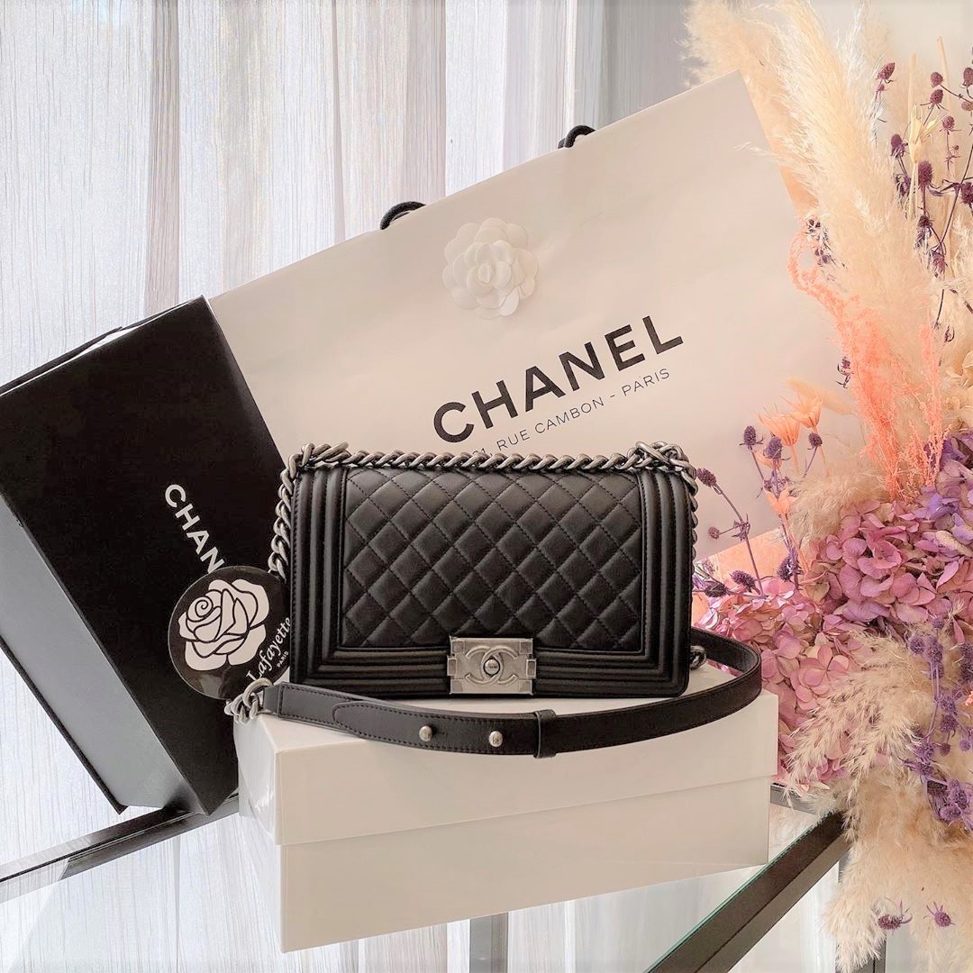 CHANEL BOY 25cm 滑面牛皮銀釦
